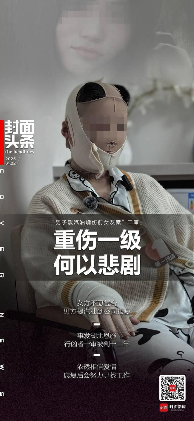 这种惋惜源自2023年秋天的一场悲剧。她被前男友泼了两次汽油烧成重伤。2025年4月22日上午,“女子被前男友泼汽油烧伤案”在恩施州中级人民法院二审开庭。五个月前的一审中,犯罪嫌疑人覃某因故意杀人罪被判处有期徒刑十二年。