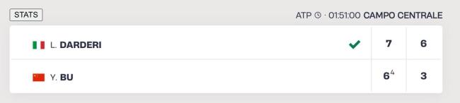 北京时间5月8日,罗马网球公开赛男单首轮比赛中,中国球员布云朝克特以0比2不敌本土选手达尔德里,未能晋级。在与达尔德里的首次交锋中,首盘比赛进入“抢七”,布云朝克特在小分领先的情况下被逆转,以6(4)比7告负。第二盘,布云朝克特的发球成功率下降到四成左右,给了对手破发的机会。第九局,他在个人非保不可的发球局中再次遭遇逆转,最终以3比6输掉比赛。