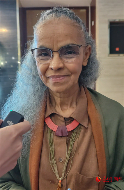 巴西环境与气候部部长玛丽娜·席尔瓦接受人民网采访。人民网记者 符园园摄