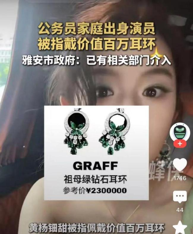 黄杨钿甜删除百万耳环照片 家庭财富引发公众质疑