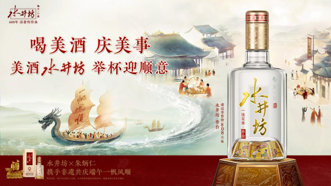 水井坊在端午来临之际,携手非遗大师朱炳仁共同设计“一帆风顺金龙舟”,将“顺意”的美好内涵注入水井坊美酒之中,在华夏大地共同祈愿安康顺遂的美好时节,让象征着一帆风顺的龙舟满载“高品质、高颜值、深内涵”的美酒,“驶”入千家万户,为每一个欢聚共庆的美好时刻,带来独一无二的节日体验与端午祝愿。