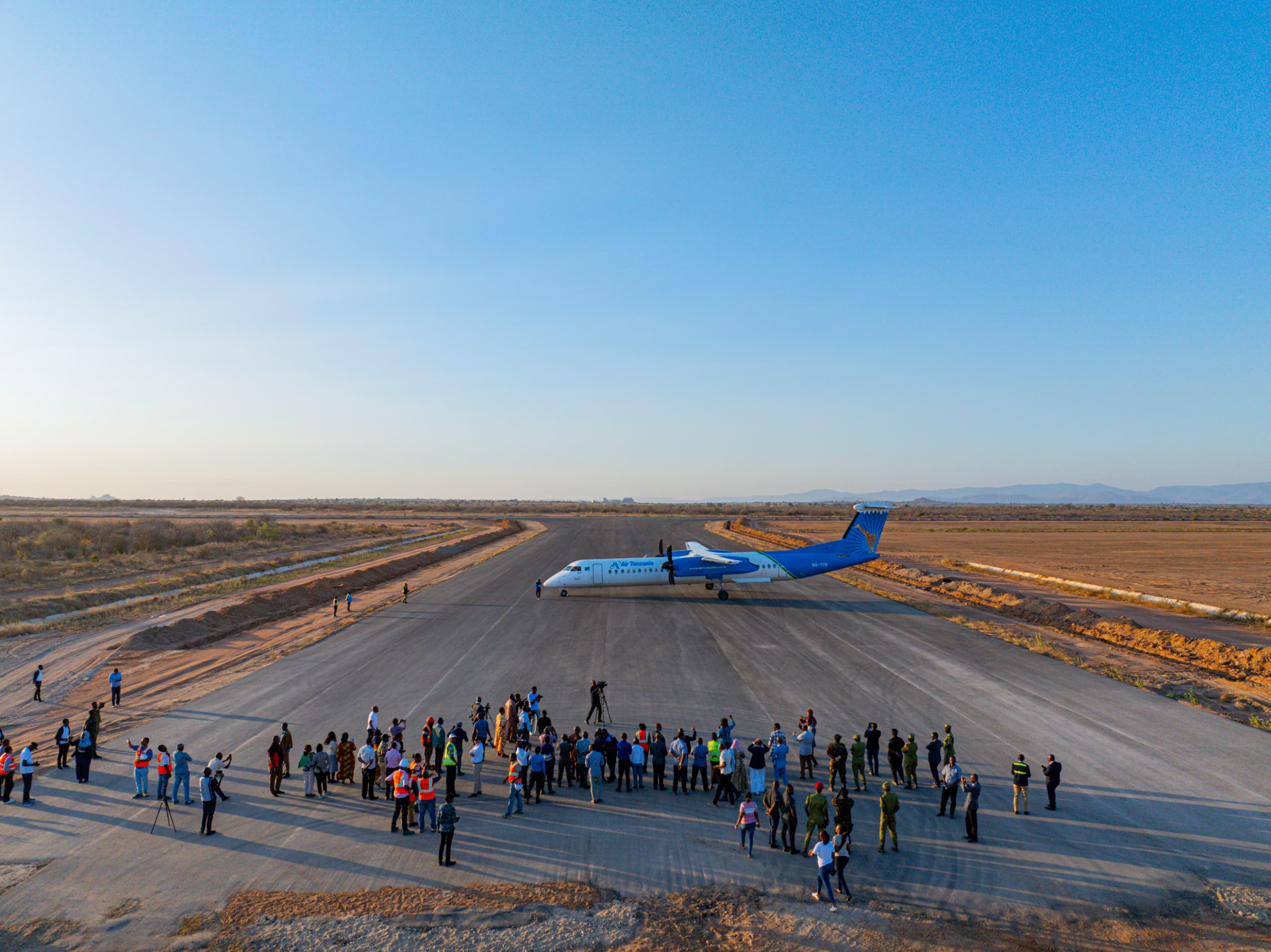 在项目现场,哈桑实地视察了已完工的跑道、停机坪及场内道路等设施,对项目高标准建设和高效推进给予了高度评价,并指出,MSALATO新国际机场的建成将显著提升多多马作为行政首都的交通枢纽功能,进一步促进坦桑尼亚旅游业、贸易和投资的蓬勃发展,为当地民众创造更多就业机会和经济收益。