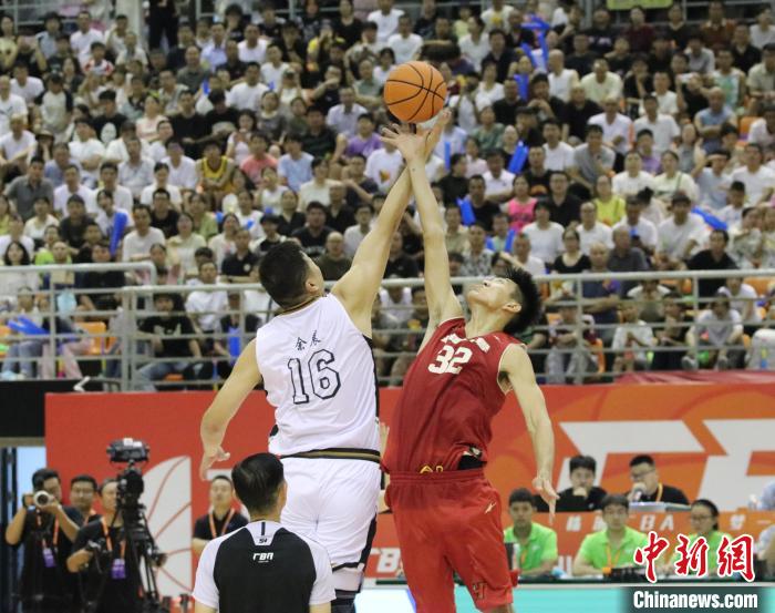 7月9日晚,株洲“厂BA”明星队对战华侨大学男篮。图为比赛开球。周阳 摄