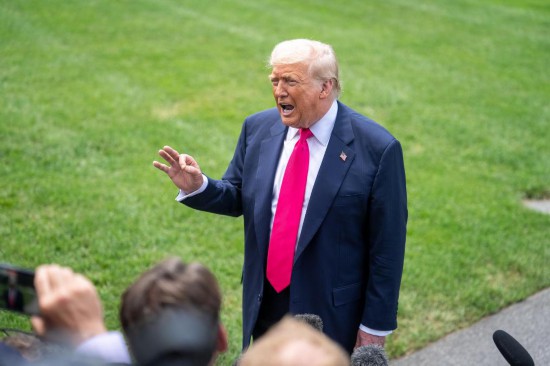7月15日,美国总统特朗普在华盛顿白宫回答记者提问。新华社记者胡友松摄