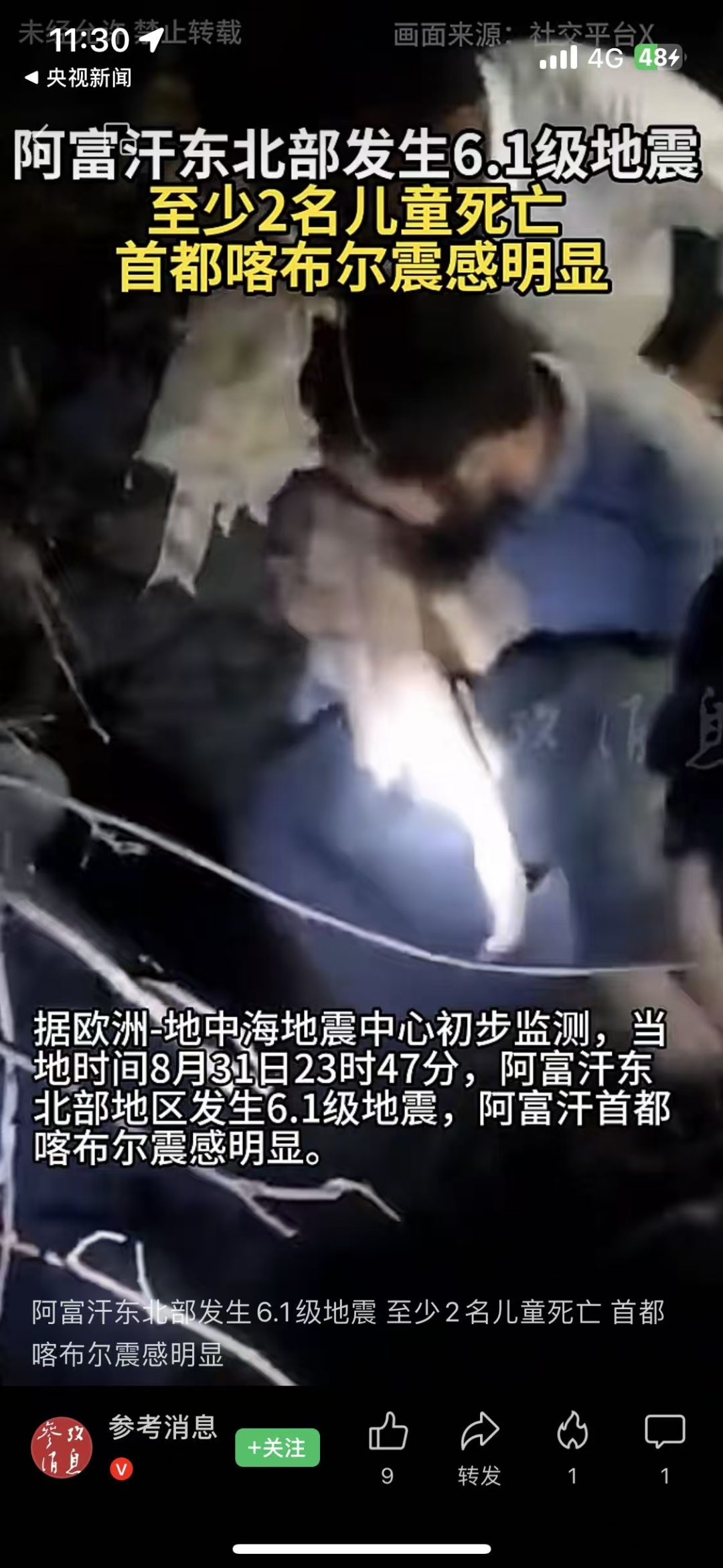 目前来自首都喀布尔和附近省份的援助队正在赶往东部省份提供紧急援助。另据环球网报道,有房屋坍塌成废墟,民众徒手挖掘救援。