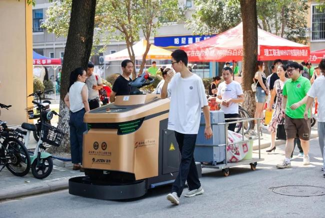 高校迎新有多卷 机器人当“迎宾” 科技改变迎新现场