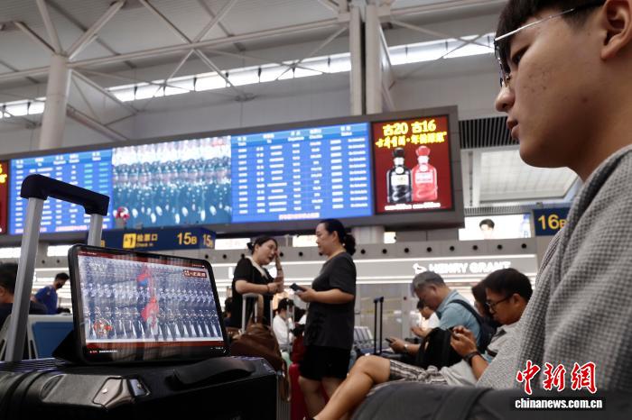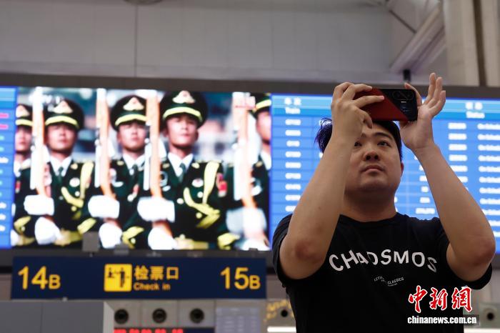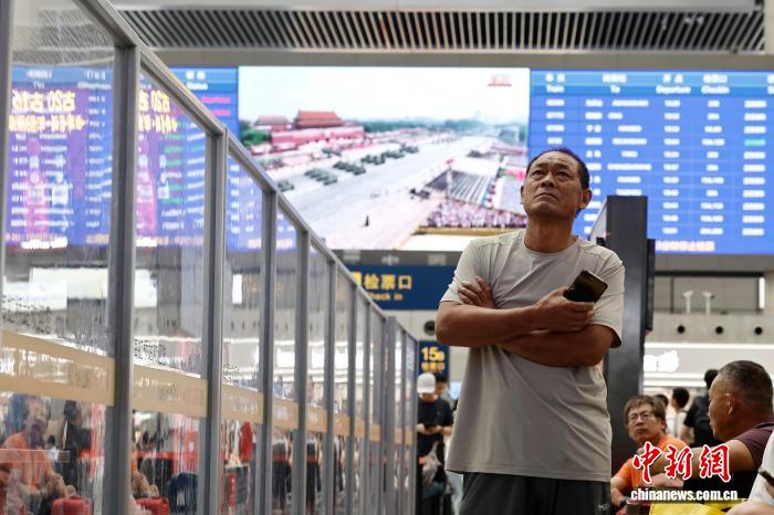 (抗战胜利80周年)上海:旅客观看纪念中国人民抗日战争暨世界反法西斯战争胜利80周年大会直播