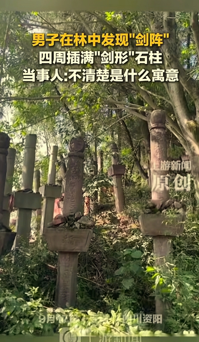 四川一男子在林中发现“剑阵”!
