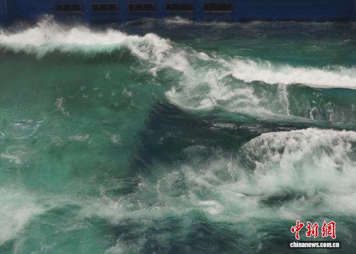 中新网扬州9月19日电 (张传明)近日,扬州影视基地进行超级水景基地室内恒温水景拍摄中心设备测试,随着工作人员按下平板电脑上的操控键,占地两千平方米的组合造浪池内接连出现了排浪、转浪、凸起浪等海浪形态。