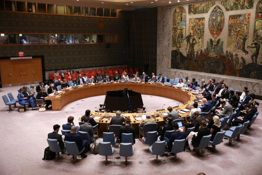 2025年6月24日,在位于纽约的联合国总部,安理会召开伊朗核问题公开会。新华社记者谢锷摄