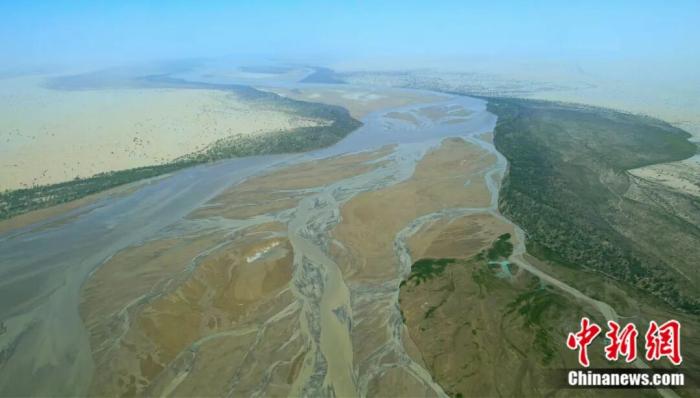 极目远眺,塔克拉玛干沙漠,在天地相接处