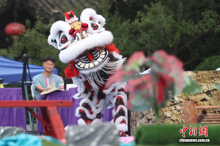 9月27日,在江苏南京举行的2025年世界华人狮王争霸赛传统南狮项目的比赛中,来自中国、新加坡、南非、美国等国家的参赛队伍轮番登台展绝活。图为深圳市宝安区西乡蚝业黄连胜醒狮团的成员在比赛中。中新社记者 泱波 摄