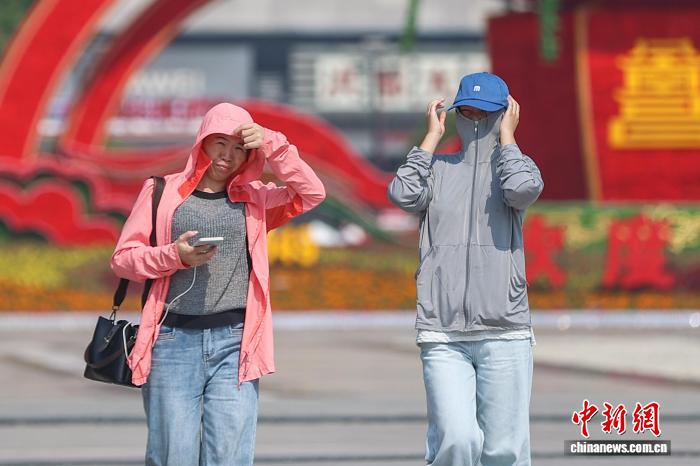 10月11日,江西南昌,民众身穿防晒衣戴帽子出行。中新社记者 刘力鑫 摄