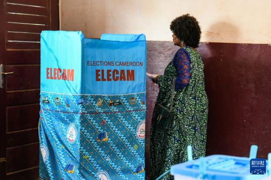 10月12日,在喀麦隆首都雅温得,一名选民参加投票。新华社发(科普索摄)