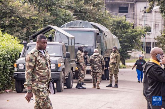 10月12日,在喀麦隆西南大区首府布埃亚,喀麦隆安全部队在投票站附近巡逻。新华社发(穆朗·廷古姆摄)