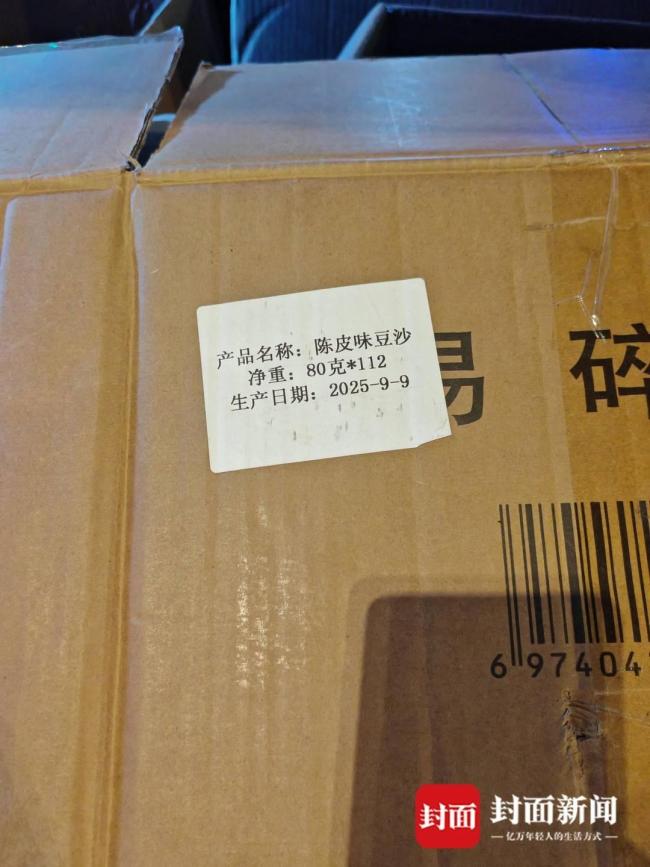 在武侯区三环路内侧的一个摊位上,一辆小型货车正在售卖单个包装的月饼。摊主称这些月饼是从冠生园厂里拿出来的,原先为礼盒装,售价上百元一盒。摊主展示了印有“9月9日”生产日期的纸箱,并表示月饼保质期为6个月。然而,记者注意到该纸箱实际是用来装粽子的。