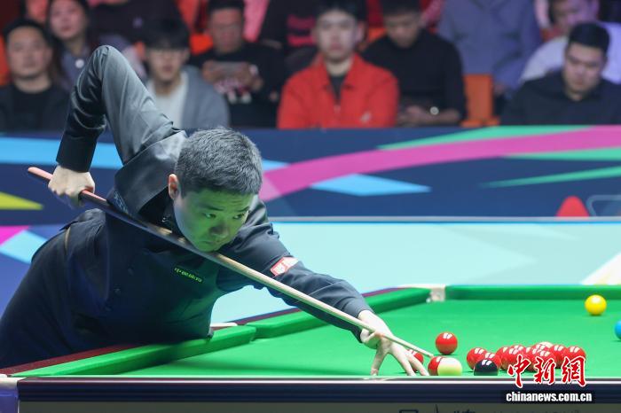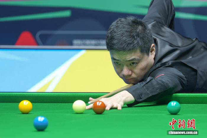 11月2日,2025世界斯诺克巡回赛国际锦标赛在南京开赛,丁俊晖、赵心童、奥沙利文等高手亮相赛场。图为丁俊晖在比赛中。中新社记者 泱波 摄