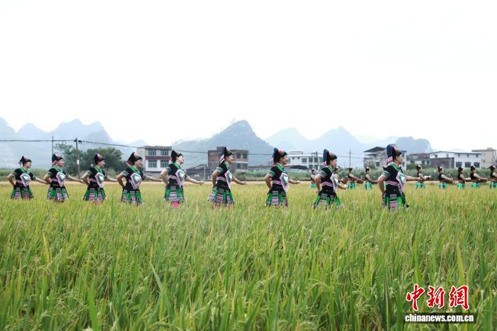 图为民众在田间跳舞。韦蒙玲 摄