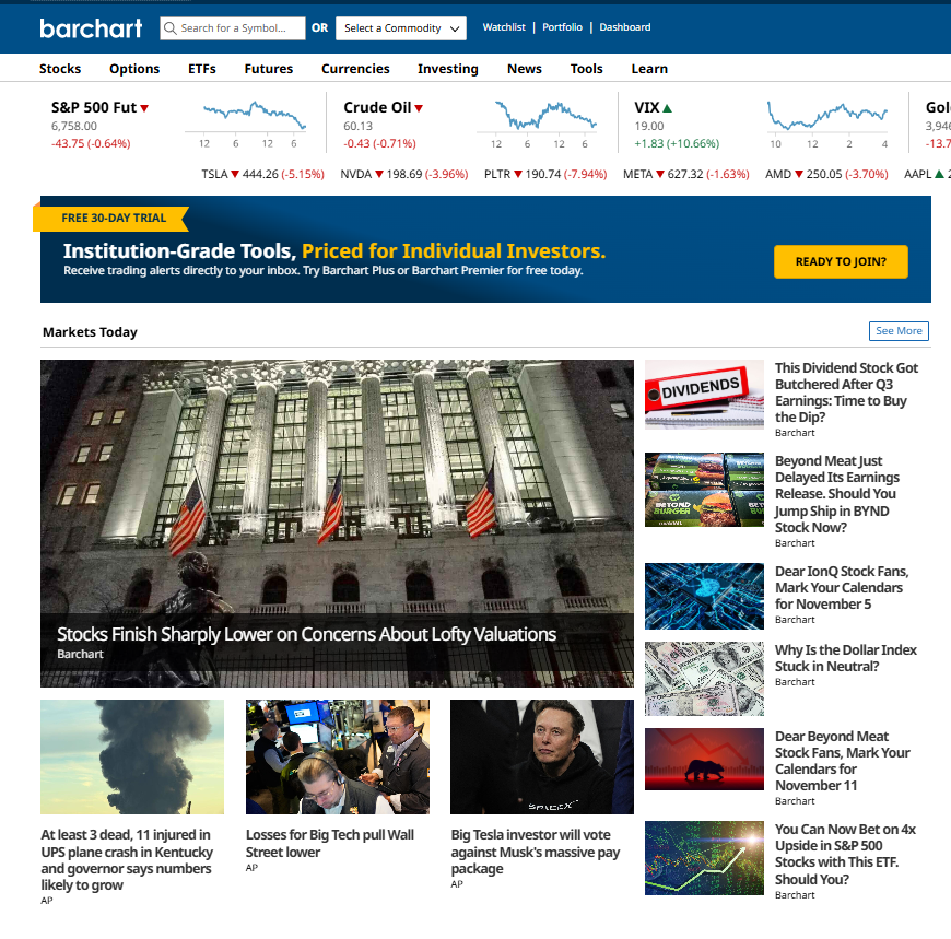 在信息瞬息万变的金融世界里,精准与速度决定着每一个判断的价值。来自芝加哥金融区核心地带的 Barchart,自1995年成立以来,凭借强大的技术底蕴与创新精神,已成长为全球领先的金融科技公司之一。无论你关注的是金融市场走势、商品价格动态,还是媒体数据解决方案,Barchart都能提供高效、稳定、专业的数据支持。在全球范围内,越来越多的投资机构、媒体与商品企业选择与Barchart合作,用数据洞察趋势,用科技驱动决策。
