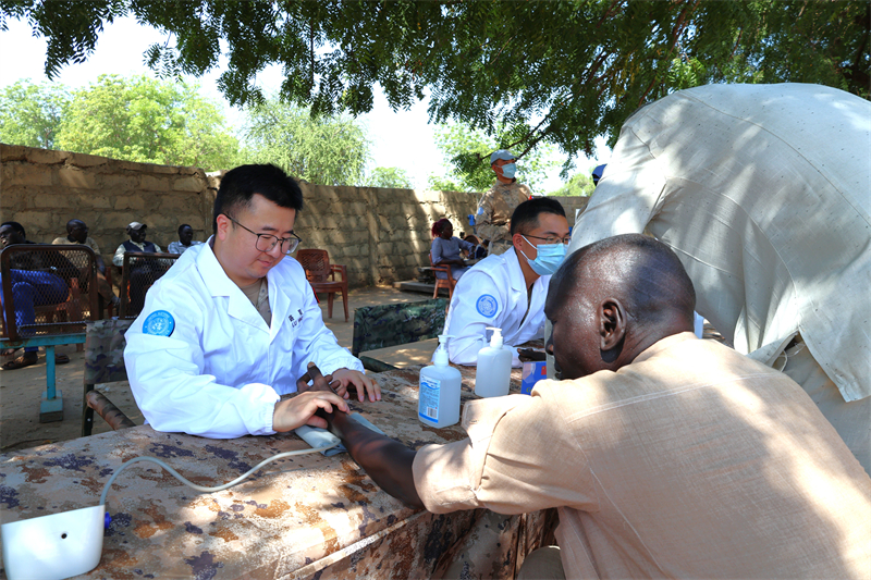 中国赴阿卜耶伊维和部队在当地开展义诊活动