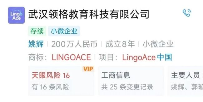 天眼查则显示,PPLINGO PTE.LTD为Lingoace实际控制人,但并无境内其他信息。
