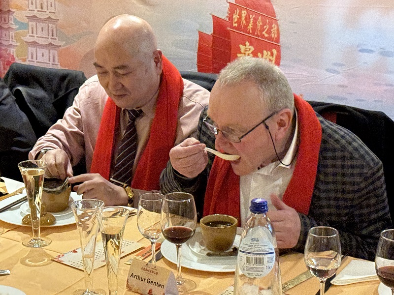 人民网布鲁塞尔11月25日电 (记者牛瑞飞)24日,一场跨越山海的美食文化交流活动在比利时列日市精彩亮相。作为中国唯一申报2025年联合国教科文组织“创意城市网络·世界美食之都”的城市,泉州携千年饮食文明与现代美食产业走进欧洲,由泉州市申创世界美食之都办公室指导、比利时国际中餐业联合会与泉州市美食产业促进会共同主办的“世遗泉州·味连五洲——泉州美食欧洲行”活动在比利时正式启动。中比政商界人士七十余人出席仪式,共同见证中欧美食文化交流的新篇章。