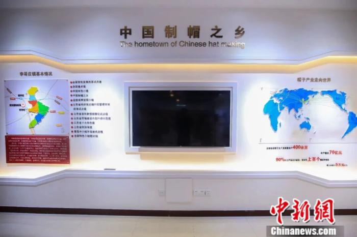 当地招商中心制帽展厅。胶州市委宣传部供图