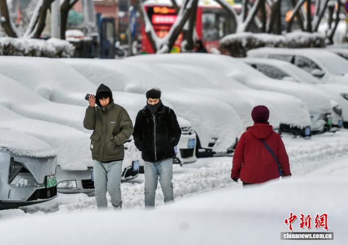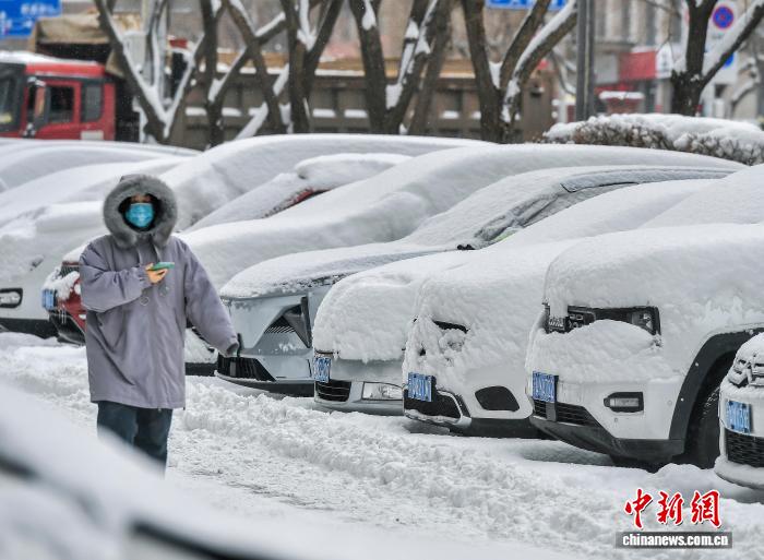 12月11日,一夜降雪后,新疆乌鲁木齐市气温骤降10℃至15℃左右,车辆上落满厚厚的积雪。受强冷空气影响,12月10日该市出现强降雪及大风天气,气象部门相继发布寒潮和暴雪预警信号。中新社记者 刘新 摄
