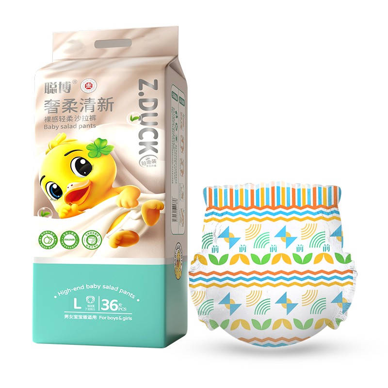 第一层为高透气面层,配合3D立体凸点或柳叶三拼结构,有效减少与肌肤的接触面积,让尿液迅速下渗;第二层是高分子吸收芯体,采用特殊排列工艺,在极薄厚度内实现均匀导流,避免局部饱和;第三层则为锁水屏障,将已吸收的液体牢牢固定,杜绝返潮。三者协同作用,不仅提升了整体吸水效率,更确保了整夜使用过程中屁屁始终处于干爽状态,为宝宝营造一个稳定、舒适的睡眠微环境。