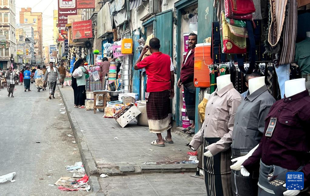 1月6日,在也门哈德拉毛省穆卡拉市,人们在街上购物。