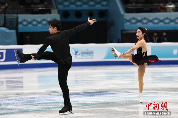 中新社北京1月22日电 (记者 国璇)2026年国际滑联四大洲花样滑冰锦标赛22日在国家体育馆揭幕。北京冬奥会冠军隋文静/韩聪在双人滑短节目比赛中位居头名。