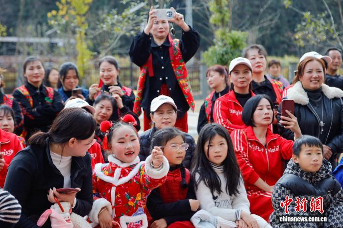 2月12日,一场接地气、有温度的迎新春“村晚”在福建省顺昌县高阳乡幸福里社区操场热闹开演。村民自编自导自演,歌舞、小品等节目轮番登场,用质朴表演展现乡村新风貌,现场掌声不断、欢声笑语洋溢。活动同步开展写春联、义剪、健康体检等便民服务。图为村民观看“村晚”。朱城铖 摄