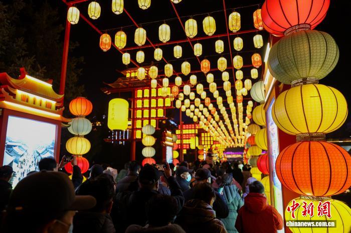 图为民众欣赏花灯。中新社记者 薛蒂 摄