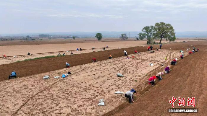 山西省长治市屯留区河神庙乡范家沟村,村民们正弯腰开沟、放苗覆土,一株株党参苗被小心栽入田间。李红卫 摄