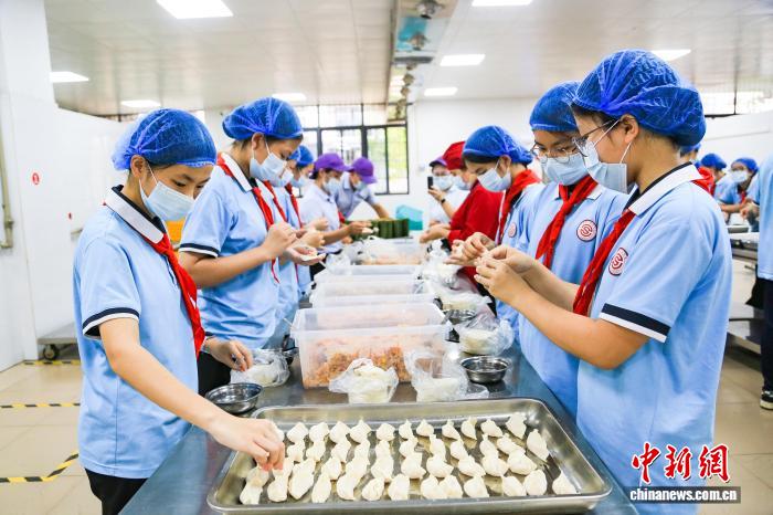 图为学生们正在包饺子。黎杰源 摄