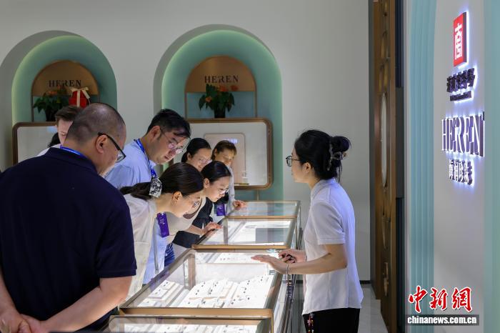 4月16日,参加“开局之年看中国·开放自贸港”网络主题传播活动的海内外媒体人,在三亚崖州湾科技城高新区参访海润黄金珠宝产业园。中新网记者 骆云飞 摄