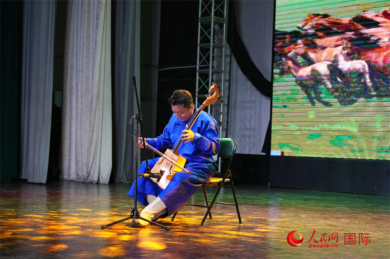 内蒙古艺术剧院艺术家表演马头琴独奏。人民网记者 李墨摄
