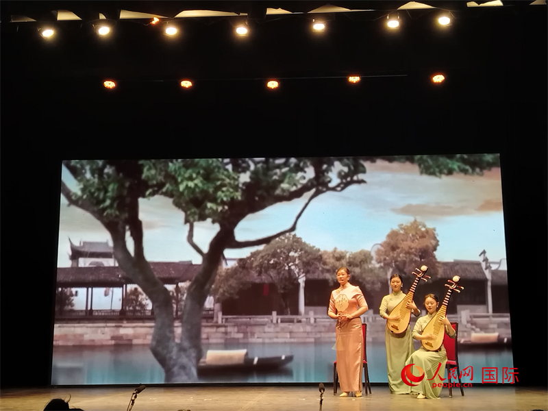 人民网开罗4月24日电 (记者沈小晓)当地时间4月21日晚,诗画评弹“雅韵江南”——中国评弹艺术演出在开罗举行。活动由开罗中国文化中心、中外文化和旅游交流中心主办,无锡市歌舞剧院承办。来自江苏省无锡市歌舞剧院的演员为当地观众带来了精彩的表演,如评话《三国·芦花荡》、江南小调《无锡景》、弹词开篇《荡口家书》、吴语歌曲《声声慢》《花好月圆》等,获得现场掌声连连、好评不断。