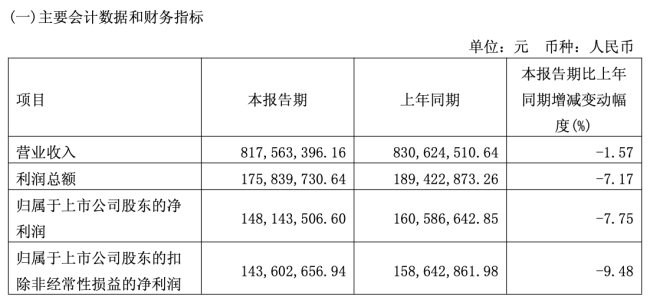 据千禾味业2026年第一季度报告显示,其营收约8.18亿元,同比下滑1.57%;归属净利润约1.48亿元,同比下滑7.75%;扣非净利润约1.44亿元,同比下滑9.48%。各项指标依旧是近三年的同期新低。