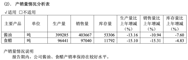尽管如此,千禾味业依旧在财报中表示:“报告期内,公司酱油、食醋产销率保持在较好水平。”