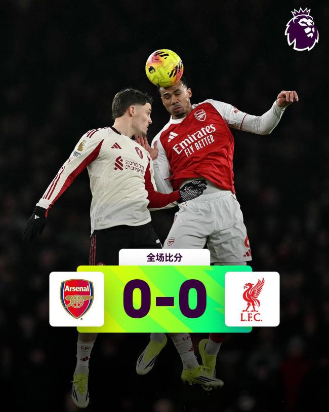 北京时间1月9日凌晨,英超第21轮焦点战在酋长球场进行,阿森纳迎战利物浦。上半场布拉德利吊射击中横梁,下半场双方机会不多,布拉德利伤退,利物浦全场0射正。最终,阿森纳主场0-0闷平利物浦,联赛三连胜结束,但仍以6分优势领跑积分榜