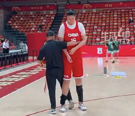 9月17日,陕西西安,中国女篮热身赛对阵尤文图特女篮。赛前山东姑娘张子宇再现经典拉伸动作,手里拿着球,抬起胳膊就可以轻松触碰到篮板。...