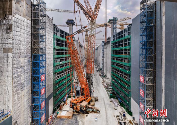 中新网南宁12月8日电 (记者 杨陈)记者8日从平陆运河集团获悉,近日,平陆运河马道枢纽上闸首左线最后一节人字门精准吊装落位,标志着平陆运河枢纽工程船闸人字门吊装工作全部完成,全面转入人字门附件及机电设备安装